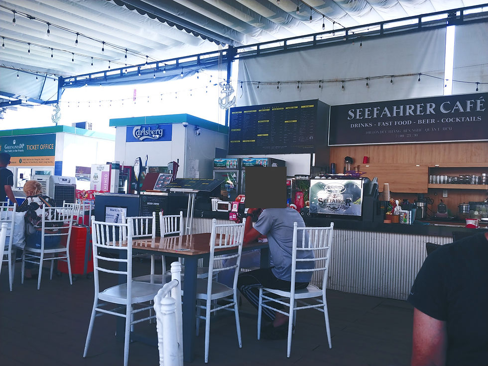 The transportation we took was a little ferry departing from Ho Chi Minh City Passenger Ferry Port because we wanted to have different scenery to enjoy our journey. Besides it is very affordable and quick. There is a little cafe in the waiting area like the photo down below but no Banh mi...